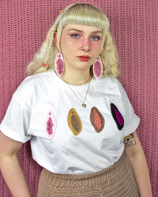 Vulva Inspired Crochet Cotton T-Shirt - Custom