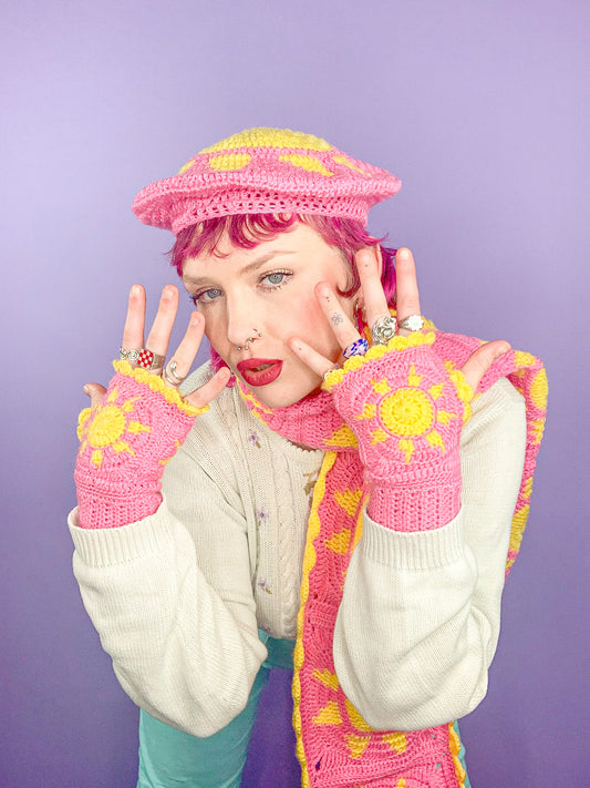Sun Granny Square Fingerless Gloves - PDF Crochet Pattern