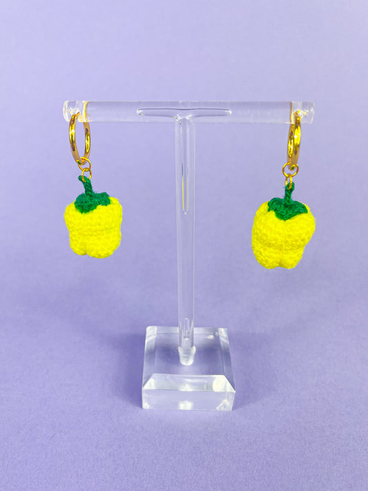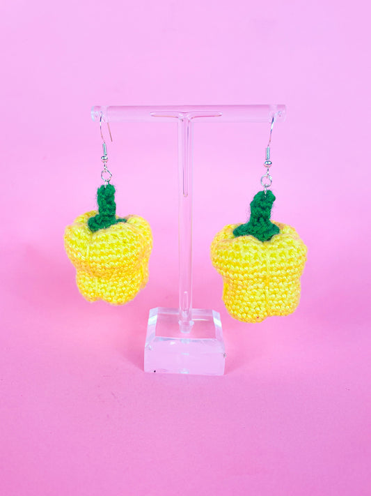 Yellow Bell Pepper Crochet Statement Earrings