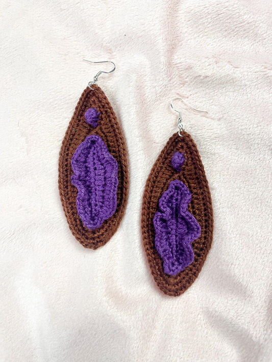 Vulva Inspired Crochet Statement Earrings in Dark Brown