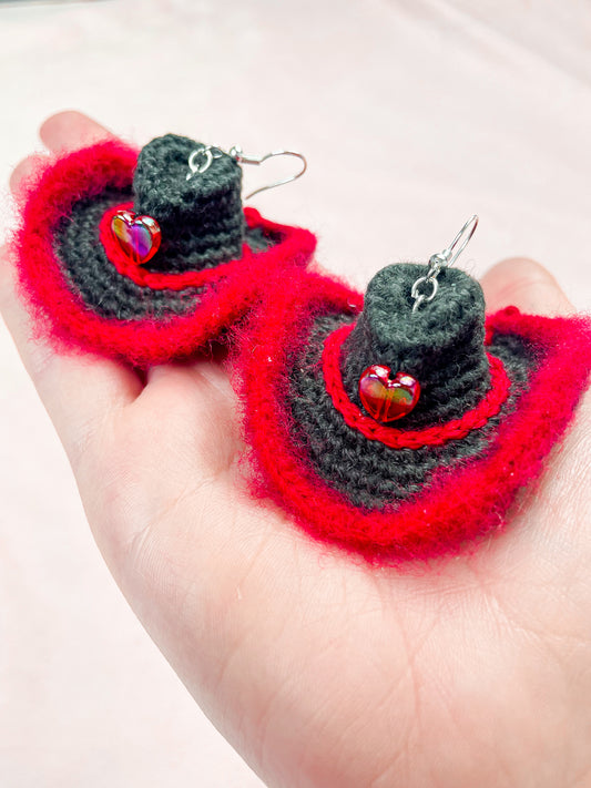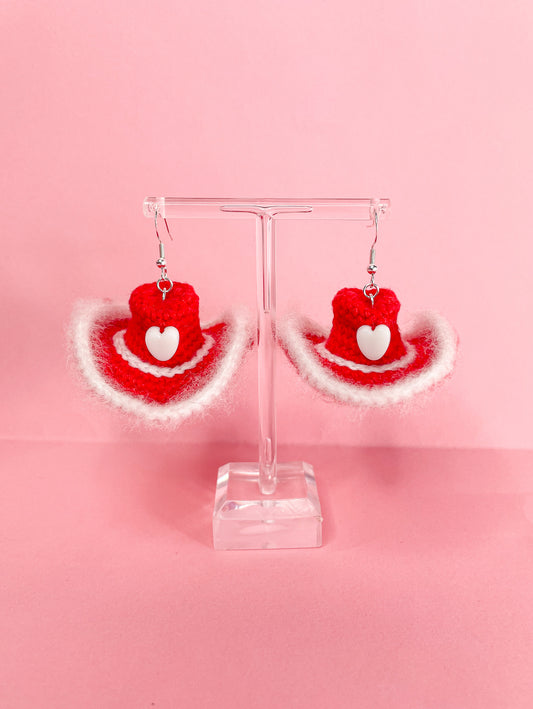 Cowboy Hat Statement Crochet Earrings in Red