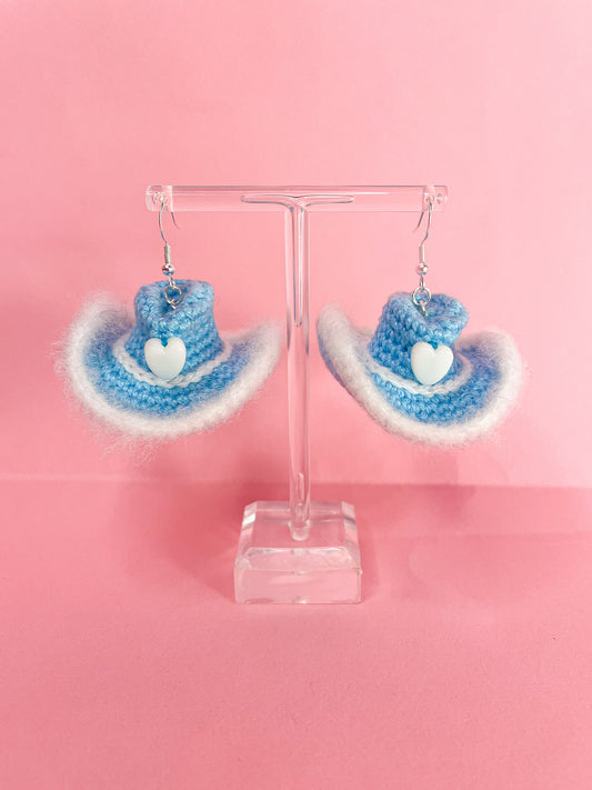 Cowboy Hat Statement Crochet Earrings in Blue