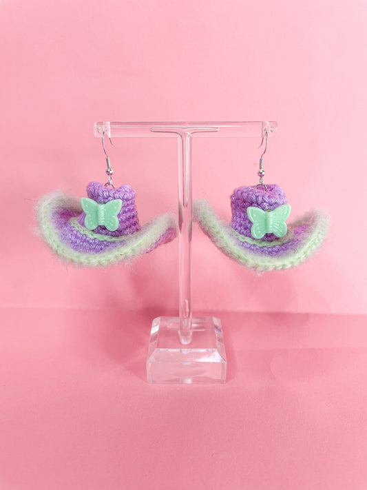 Cowboy Hat Statement Crochet Earrings in Purple