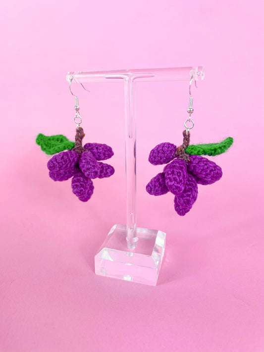 Grape Crochet Statement Earrings in Purple