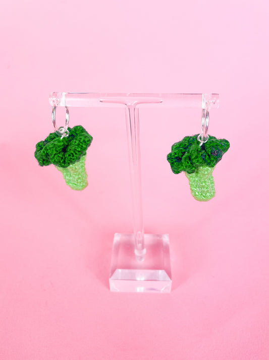 Mini Broccoli Crochet Bead Hoop Earrings