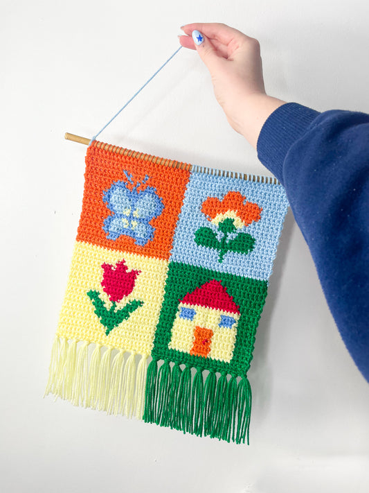 Home Sweet Home Crochet Wall Hanging in Bright