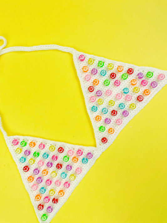 Smile Face Beaded Crochet Bralette in White - Size UK 4-6