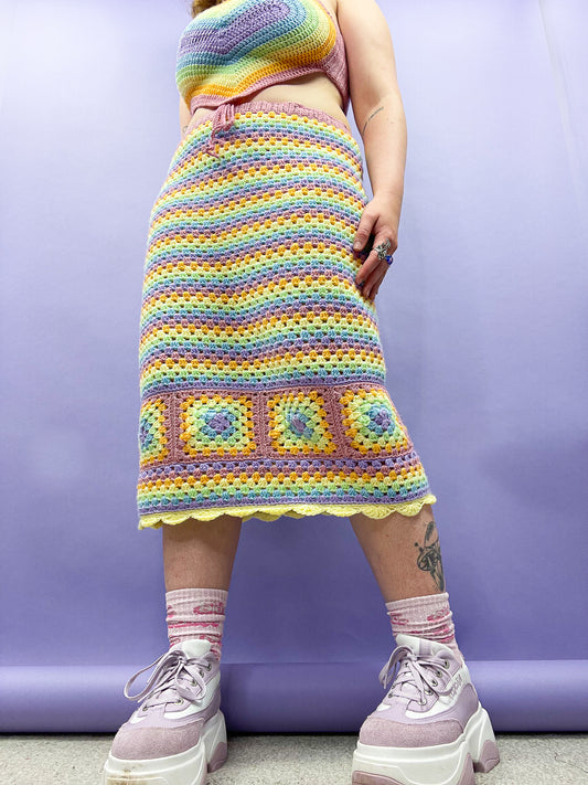 Pastel Rainbow Crochet Midi Skirt with Granny Squares